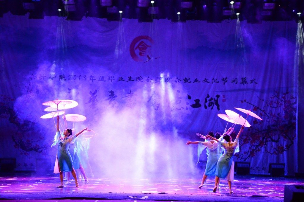 整场晚会分为三个章节:落衣闻香,素手烁芒 ;雨过云舒,顾盼相扶;扁舟不系,终恋江湖。晚会在激情热烈的开场舞《Dangerous Girls》中拉开帷幕,接着一片欢呼和掌声里,会计学院张龙平院长发表了讲话。他首先对顺利毕业的同学们表示了祝贺,然后对即将踏入社会的毕业生们提出了一些建议与要求,首先,“作为社会人,要严格要求自己”,不仅如此,还要“要好好活着”,最后要记得“回报母校”。院长富有激情、幽默诙谐的演讲使晚会气氛一开始就迅速活跃了起来。