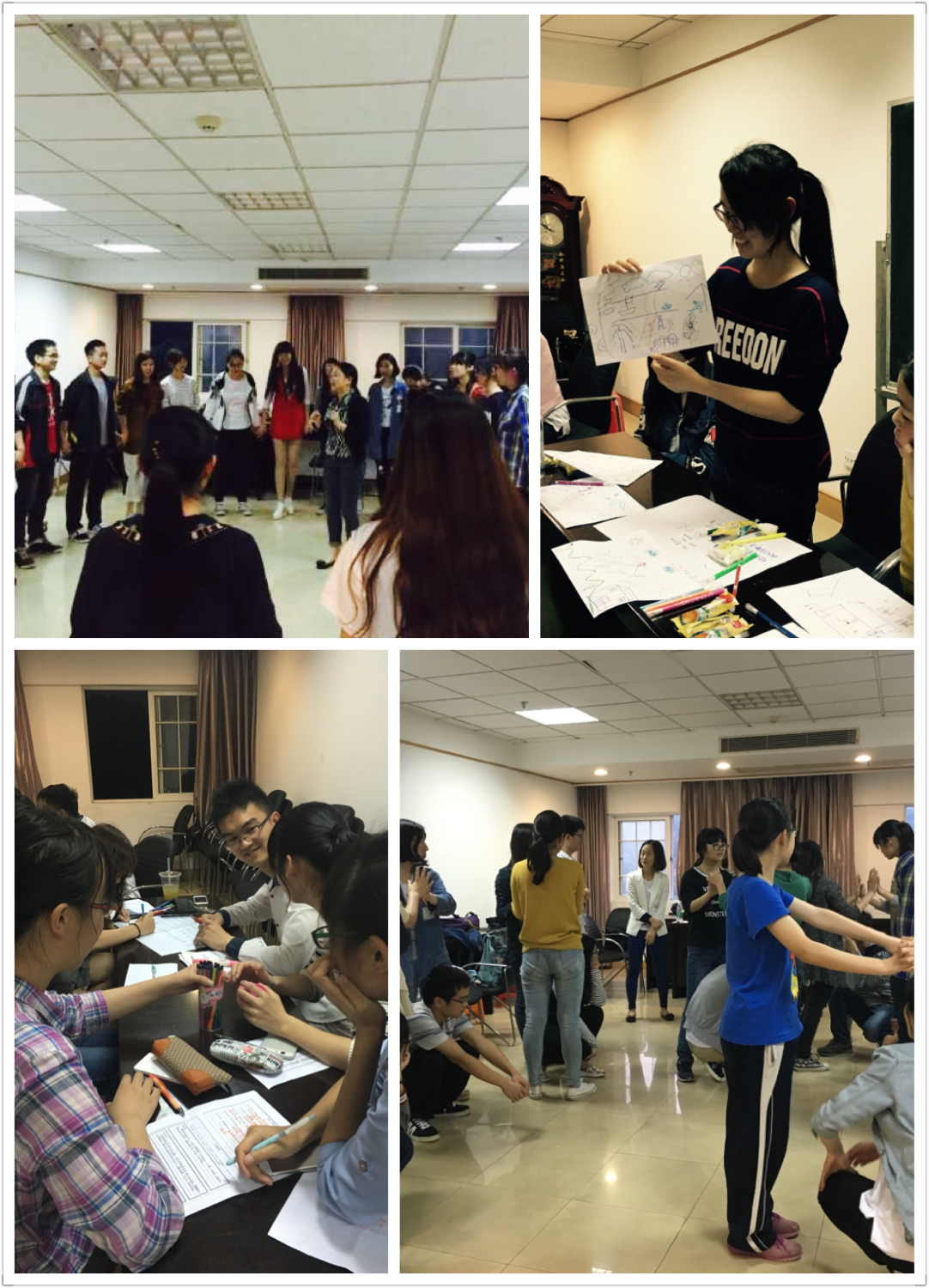 工作坊通过各种各样的团体活动,让同学们在其中充分发掘自己的兴趣,初步形成职业理想。活动有包括帮助同学了解自己价值观的“价值拍卖”、帮助同学规划时间的“时间馅饼”、采访职业人物了解职场生涯的“职业生涯访谈”等等,这些活动都在学员中中得到了热烈的反响。在持续两个多月的培训学习后,同学们纷纷表示通过参加培训活动逐渐明确了自己的发展方向,今后将能更从容地做出自己的职业选择,收获颇丰。