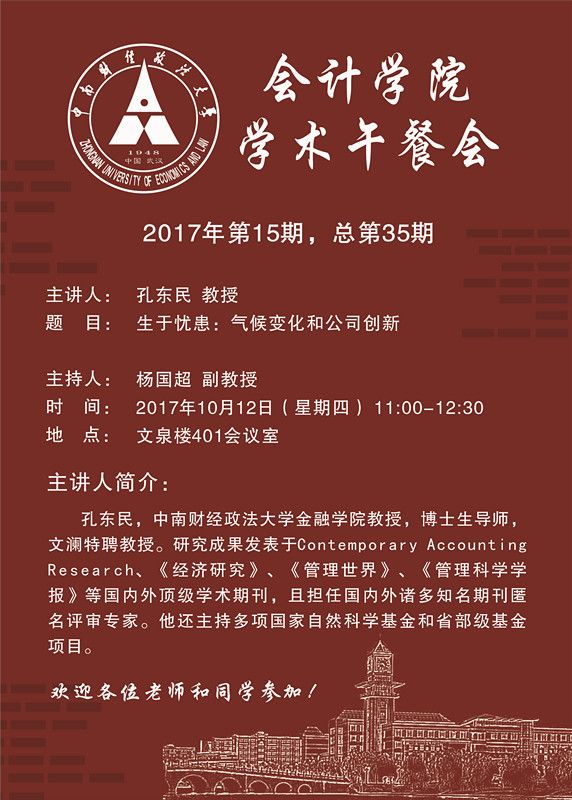 会计学院学术午餐会第15期公告