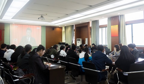 10月19日中午,会计学院各团学组织骨干成员在文泉楼南401教室进行了共同观看十九大视频、学习十九大精神的活动。