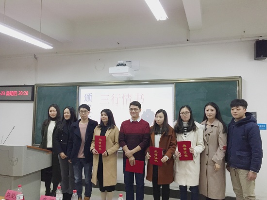 2017年11月24日晚7点,由统计与数学学院研究生会主办,会计学院、金融学院、刑事司法学院四院研究生会协办的“三行情书:爱你,无需多言”活动于文添楼110顺利举行。