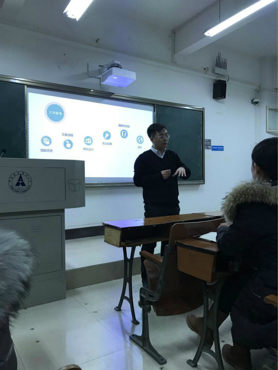接下来,李老师以论文“过度生产与企业业绩——谁在饮鸩止渴?”为例,从选题到实证分析,向同学们细致地解读了该论文的创新与规范之处。李老师在讲解过程中旁征博引、深入浅出,一步步引导同学们去思考,让同学们对于论文写作有了更为完整全面的认识。