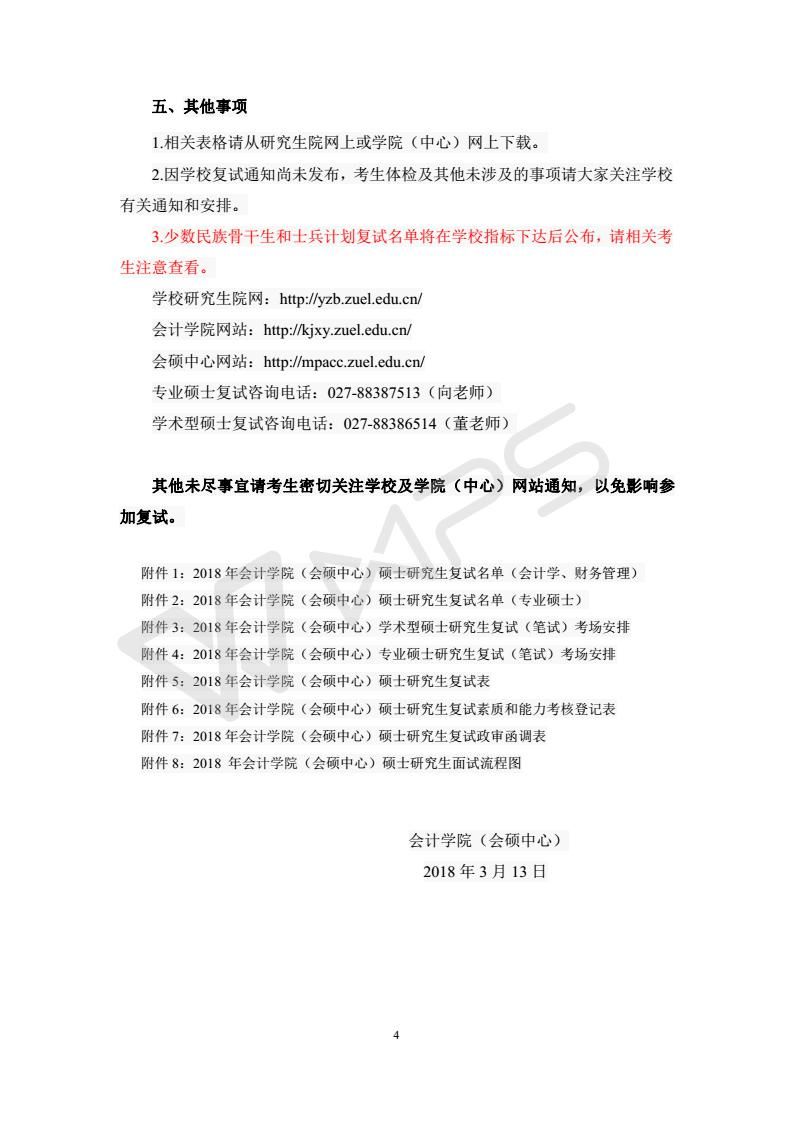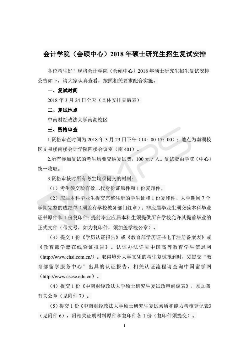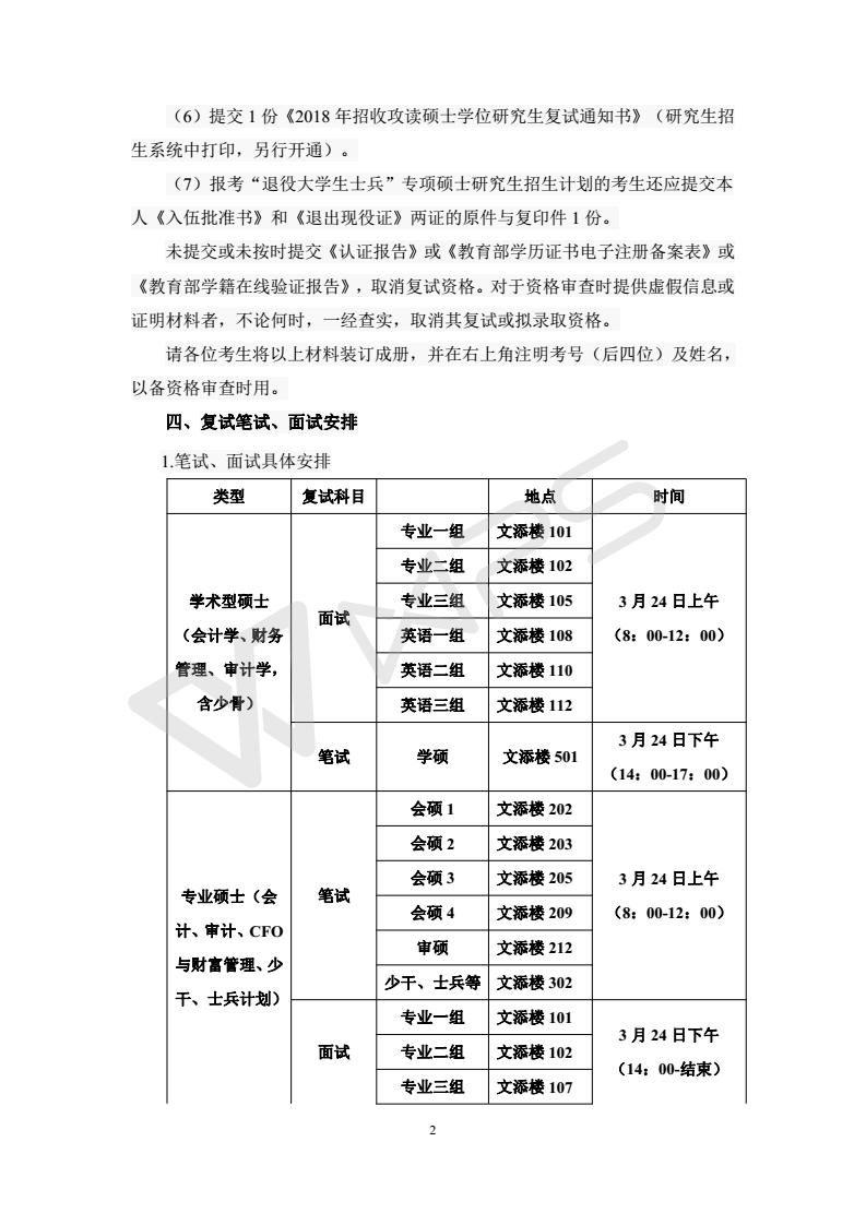 会计学院(会硕中心)2018年硕士研究生招生复试安排