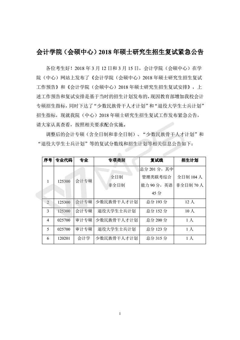 会计学院(会硕中心)2018年硕士研究生招生复试紧急公告