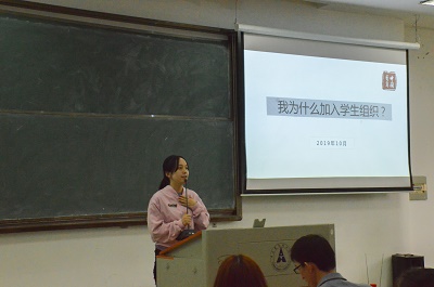 最后,院团委书记张昭妍老师讲话。张老师用真实的案例生动风趣的介绍了“我为什么要加入学生组织?”。她从结识志同道合的朋友、丰富大学生活、锻炼自身能力等三方面讲述了加入团学组织的优势,鼓励大家能在这个集体中持续坚守,不断为同学们服务,奉献自己的热情和青春。