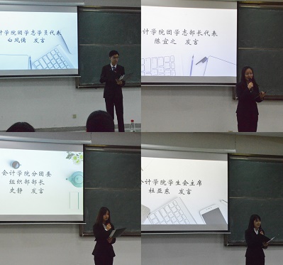 第二阶段进行的是会计学院第十三期“青年马克思主义者培养工程”培训班开班仪式。首先是新学员代表白凤儒同学发言,他代表新学员们表达了在培训班中好好学习实践、为同学们服务的决心。接下来,院团学志部长代表陈宜之同学、院学生会主席杜亚东同学、院团委组织部部长史静同学发言。他们介绍了院团学志的基本情况,分享了自己在团学志中的成长故事,同时也对新学员们提出了几点希望,希望她们能够坚守初心,平衡好培训班工作和专业学习之间的关系,秉承为同学服务的宗旨开展接下来的工作。