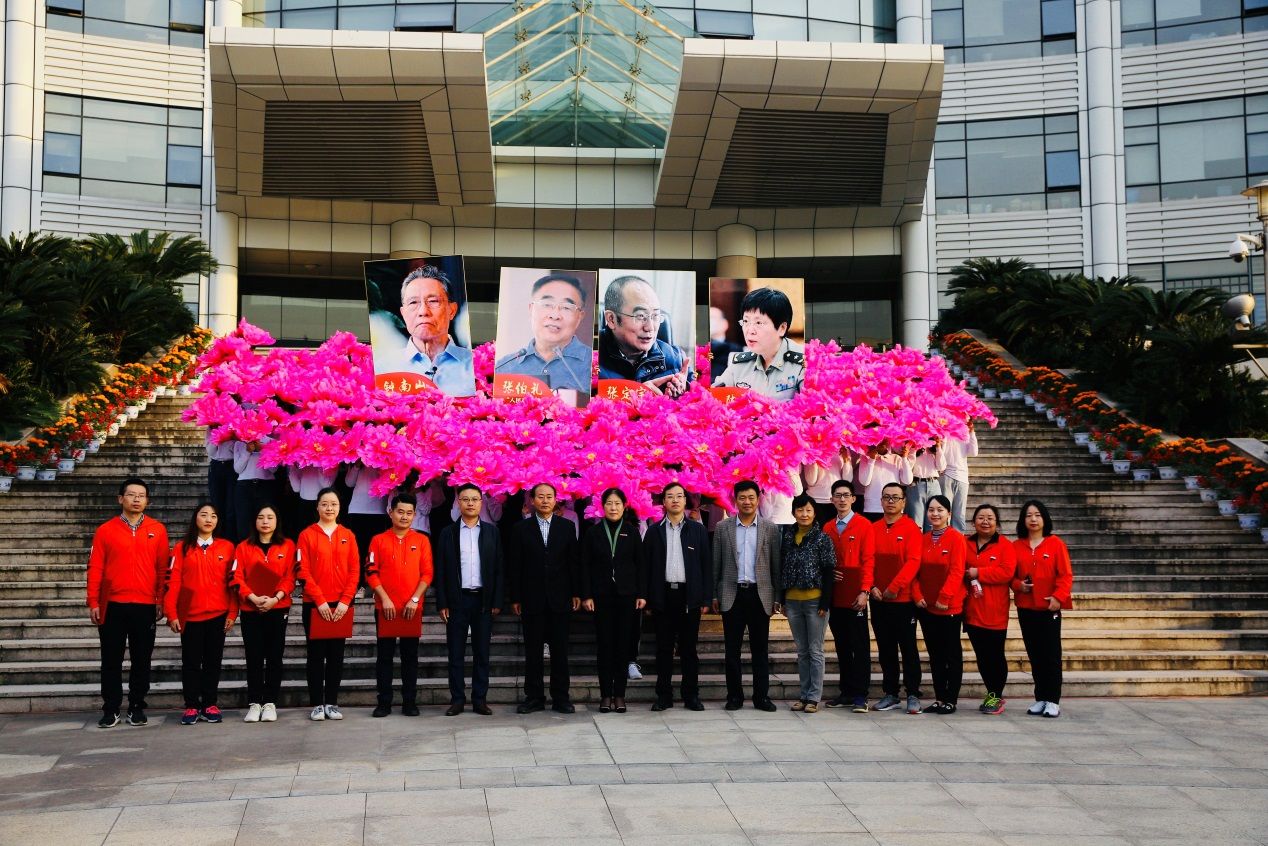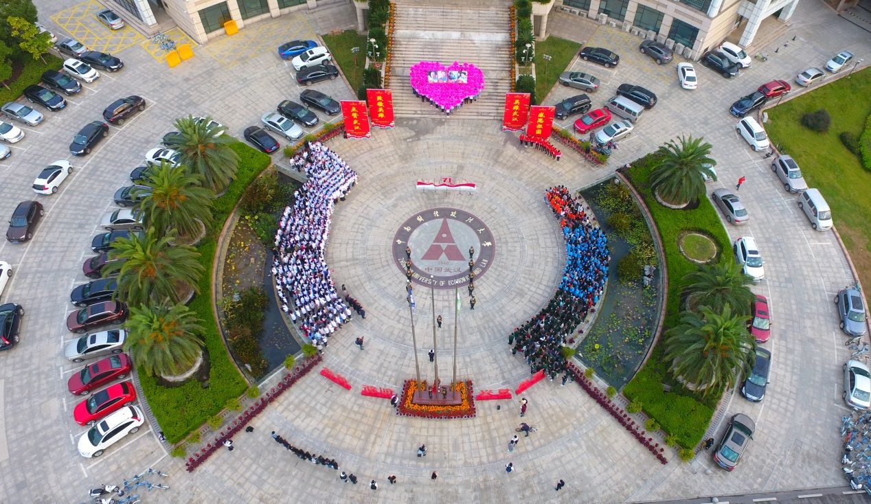 (通讯员 张懿明) 秋阳杲杲,山河无恙。10月26日清晨, “点赞武汉,致敬英雄,英雄武汉,感恩祖国”会计学院主题升旗仪式在中原楼广场举行。校党委常委、副校长姚莉,校学工部部长余小朋,会计学院院长张敦力,党委书记殷修林,副书记王延,副书记、行政副院长、纪委书记徐会超,会计学院全体辅导员及八百余名学生代表参加了本次升旗仪式。会计学院135名学生手持鲜花,在中原楼台阶摆成爱心造型。“共和国勋章”钟南山和“人民英雄”张伯礼、张定宇和陈薇等四位国家荣誉获得者巨幅画像高高耸立。