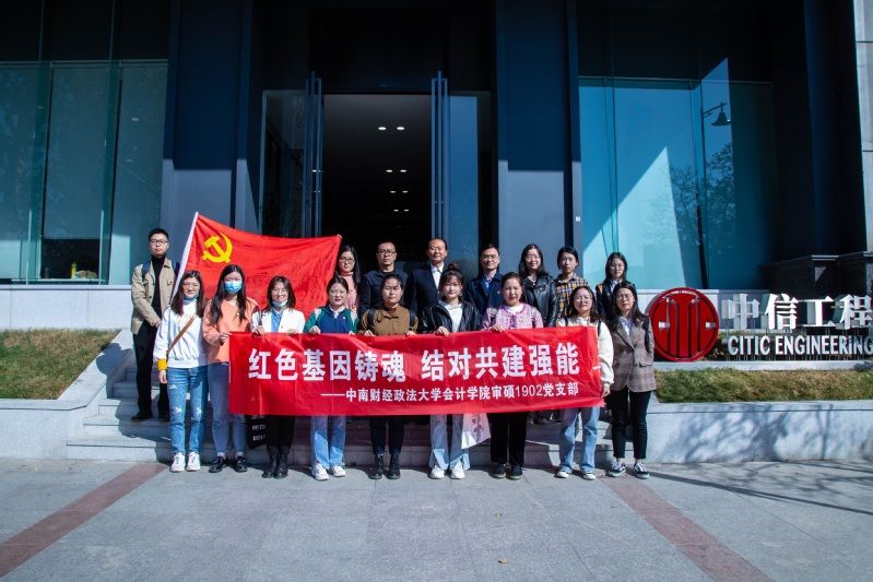11月11日,审硕1902党支部在院党委书记、副院长殷修林教授,党委委员、副院长王华教授、办公室主任向传殿和研究生辅导员杭慧喆的带领下前往中信工程设计建设有限公司,与其机关党支部改革创新党小组以“学习贯彻十九届五中全会精神,聚焦夺取目标任务、发展质量双胜利”为主题开展支部共建活动,聚焦战疫一线的先进事迹,开展专业领域的实务交流,构建“资源共享、优势互补、双向服务、合作共赢”的校企合作党建工作模式。活动中,支部党员与中信工程青年员工共同重温入党誓词,学习十九届五中全会精神,聆听“大数据与管理会计发展”讲座,在实务研讨中共同提升。活动邀请了中信工程智能建造事业部、互联网信息办公室、科技创新部总经理彭波同志做雷神山抗“疫”经历的分享报告。彭波同志是国家住房和城乡建设部建设科技委员会专家、教授级高工,他首批进场雷神山医院项目建设指挥部,担任设计技术组组长,负责协助指挥长统筹协调项目的规划方案、工程设计、设计衔接现场施工、对接医院需求以及协助移交医院等技术管理工作,被雷神山医院授予第25号“荣誉员工”胸牌。彭波同志从自己的亲身经历和所见所闻出发,向与会党员描绘了波澜壮阔的抗“疫”斗争,令大家深受教育,备受启发。会计学院研究生党员代表纷纷发言畅谈自己的学习感受和体会,致敬战疫英雄,激励实干担当。