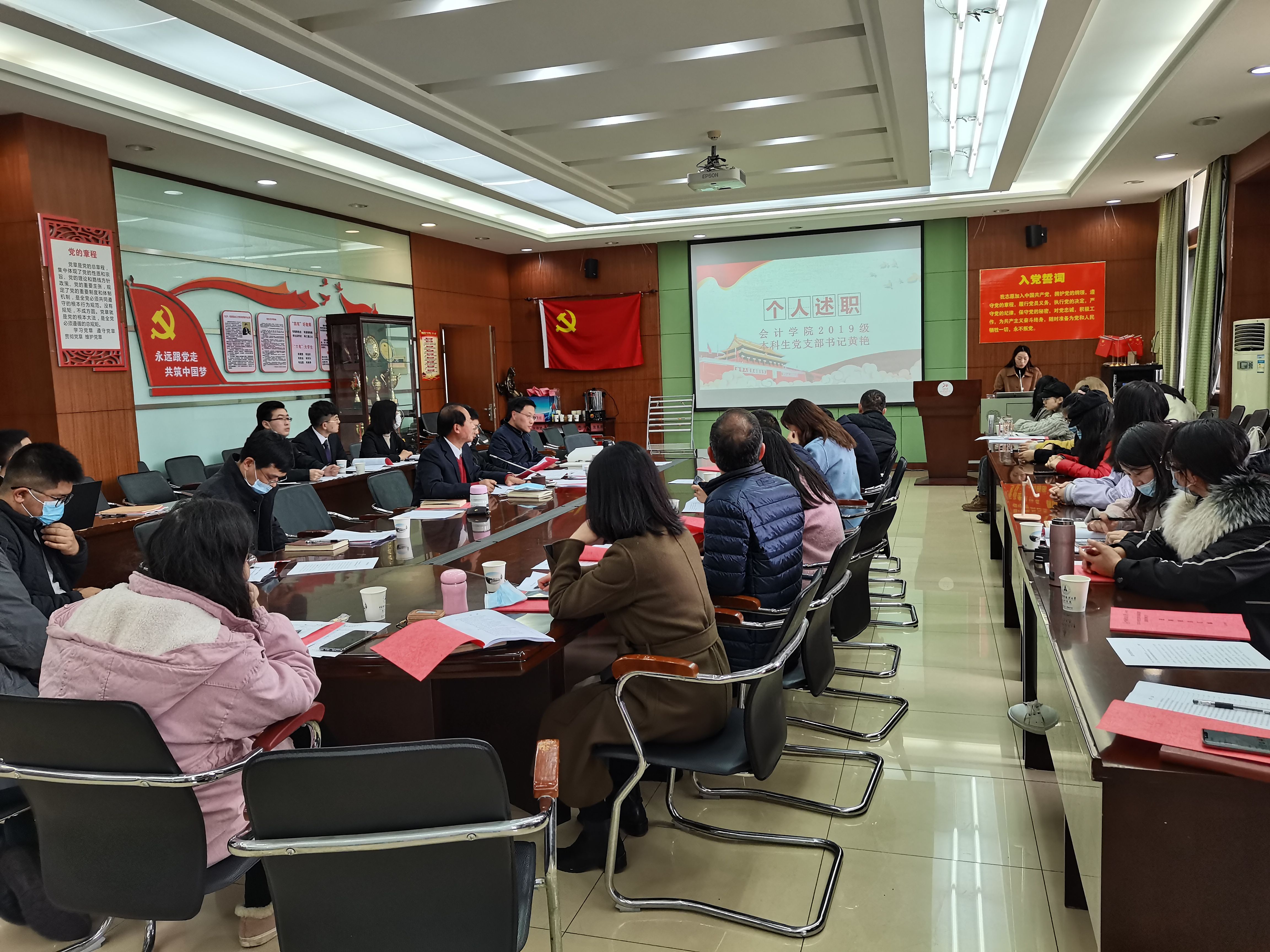 会上,全体教职工党支部书记、本科 2018级学生党支部书记、本科 2019级学生党支部书记、博士 2020级党支部书记、学硕 2020级财管审计党支部书记、学硕 2020级会计学党支部书记、审硕2020级第一党支部书记、审硕2020级第二党支部书记、审硕2020级第三党支部书记等14名党支部书记通过PPT等图文并茂的形式按照抽签顺序进行了现场述职。