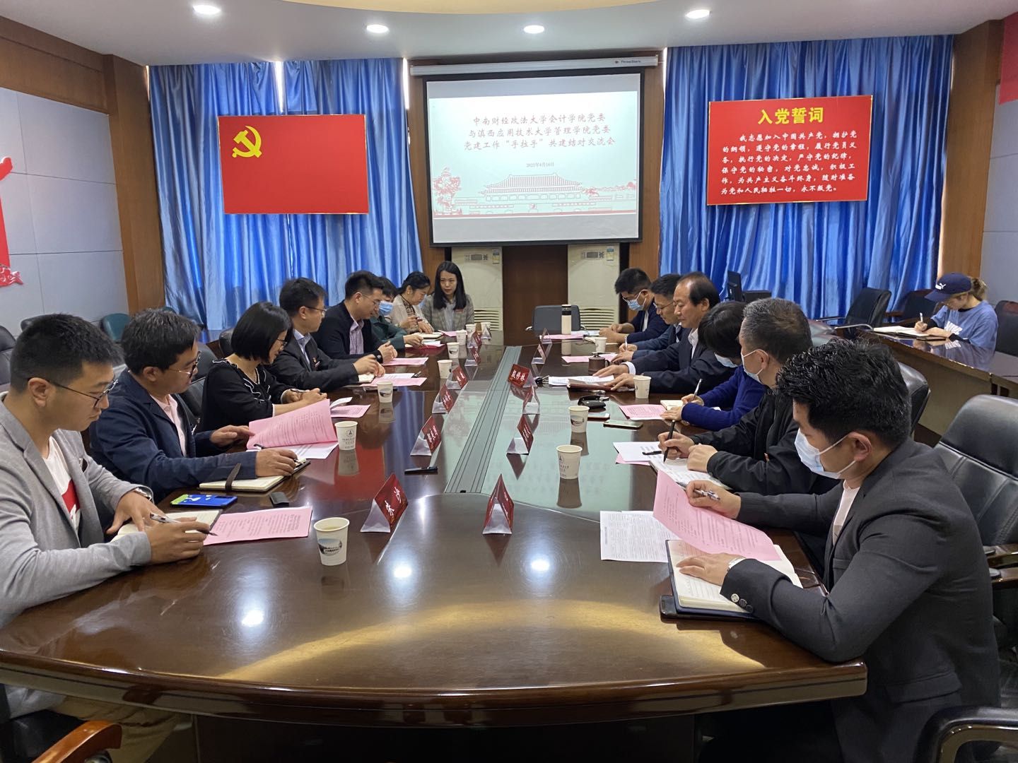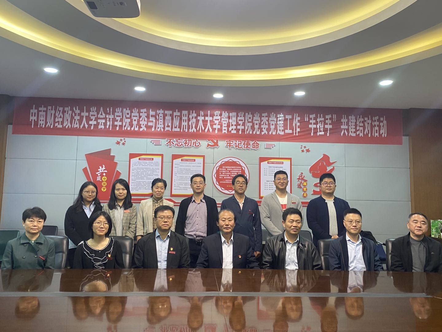 (通讯员:畅雅莉 刘营 柯雯倩) 为贯彻落实新时代党建工作的新要求,探索党建工作新模式、党建新平台,落实双方《党建工作“手拉手”共建结对协议》,会计学院党委与滇西应用技术大学管理学院党委于4月16日上午在文泉楼南306举行党建工作“手拉手”共建结对交流会。滇西应用技术大学管理学院党委副书记、院长姚敏,院党委副书记、纪委书记和向芬,院党委委员、副院长、技术研究院副院长、金融研究院执行院长、我校挂职干部李四海,副院长刘霖,会计学院党委书记殷修林,院长张敦力,党委副书记王延、徐会超等出席会议,会议由李四海主持。