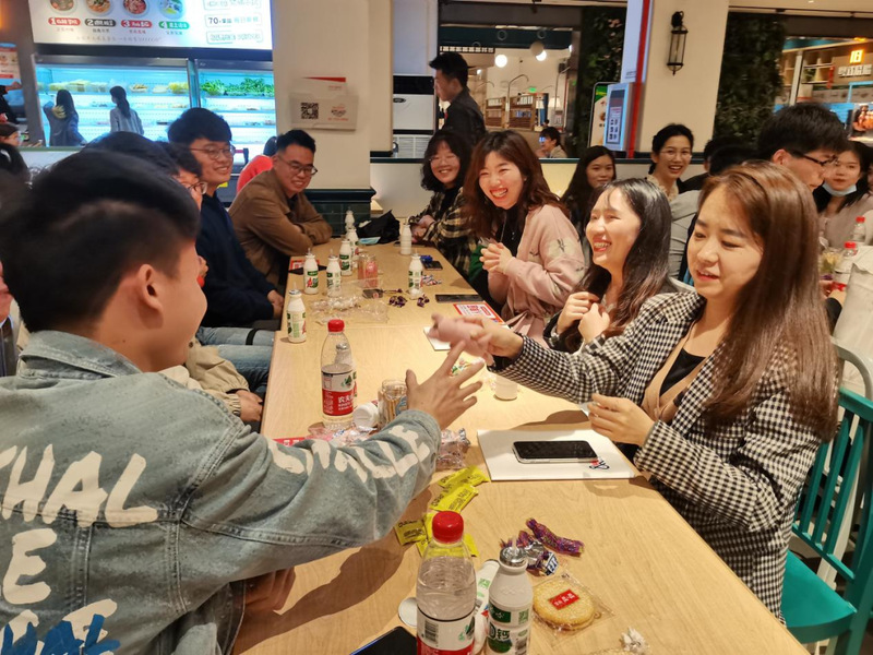4月24日,线下活动在五食堂拉开序幕,共吸引60余人参加。线下活动分为两大环节:第一环节为相识环节,大家进行自我介绍,互相认识;第二环节为游戏环节,开展了桌游、抢板凳、击鼓传花等多种趣味游戏。