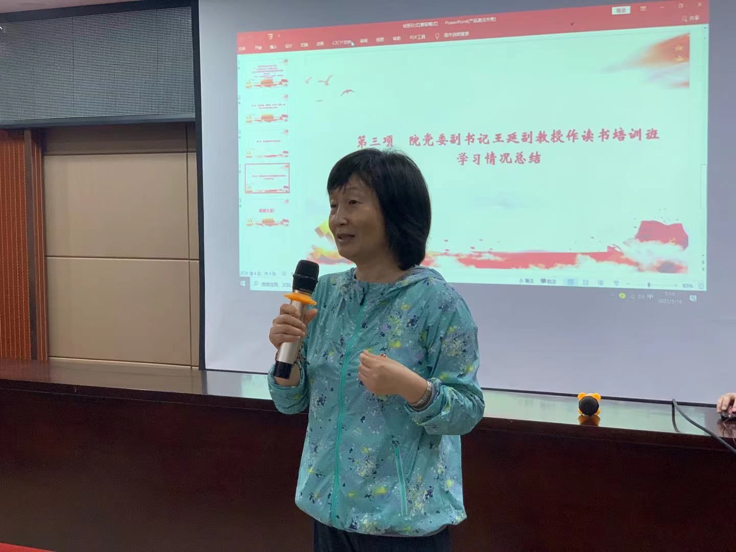 院党委副书记王延作总结讲话。她用七个“红”字总结了读书培训班暨实践研学活动:一支红色的队伍,来到了红色摇篮地,吃了红米饭,唱了《映山红》,重走了红军挑粮小道,学习体验和领会了艰苦奋斗实事求是的红色精神,带着一颗红心(赤子之心)回到我们立德树人的工作岗位再做新贡献。