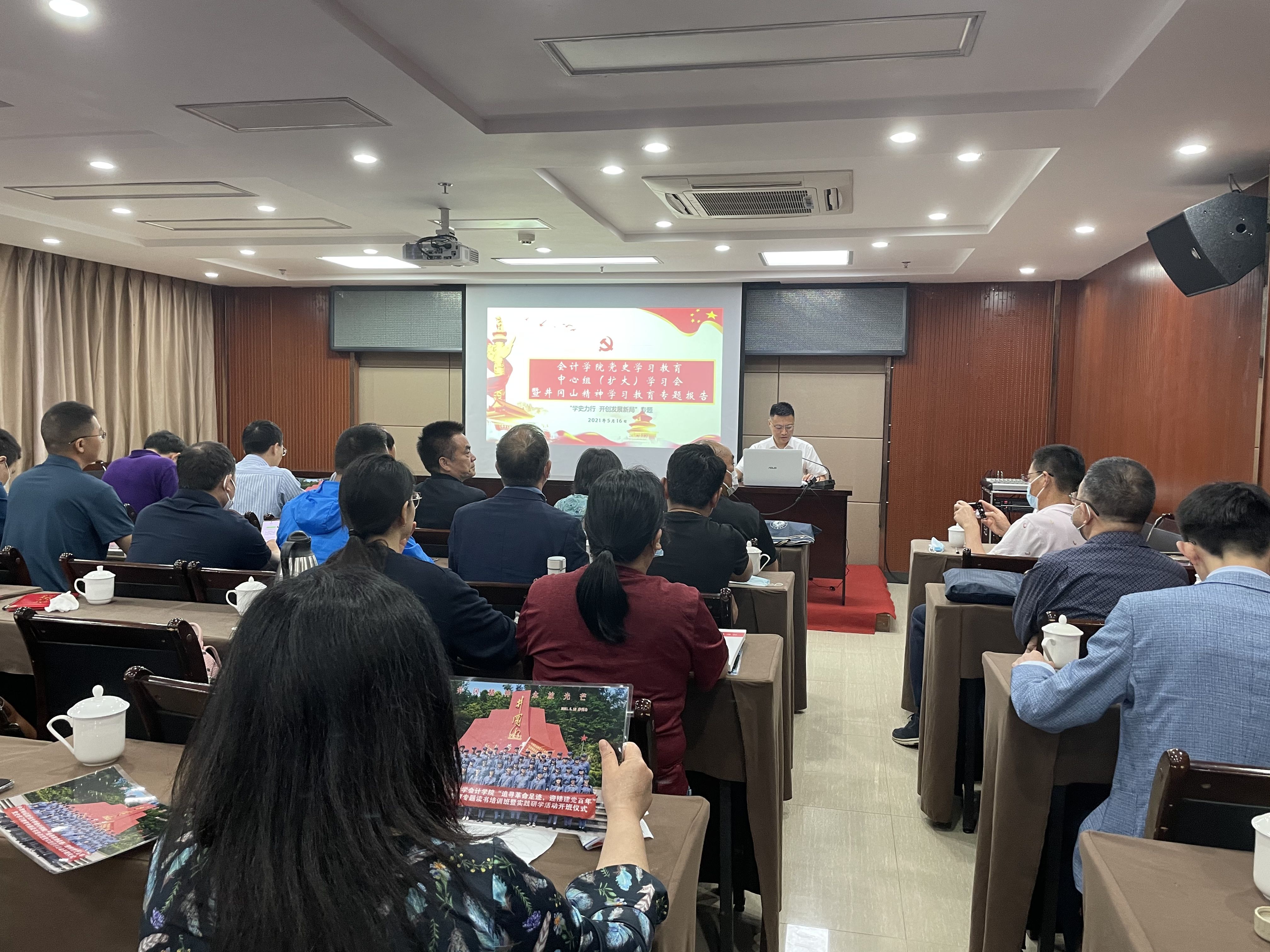 5月16日上午,会计学院党史学习教育中心组开展“学史力行 开创发展新局”专题(扩大)学习会暨井冈山精神学习教育专题报告。专题(扩大)学习会由党委副书记徐会超主持。