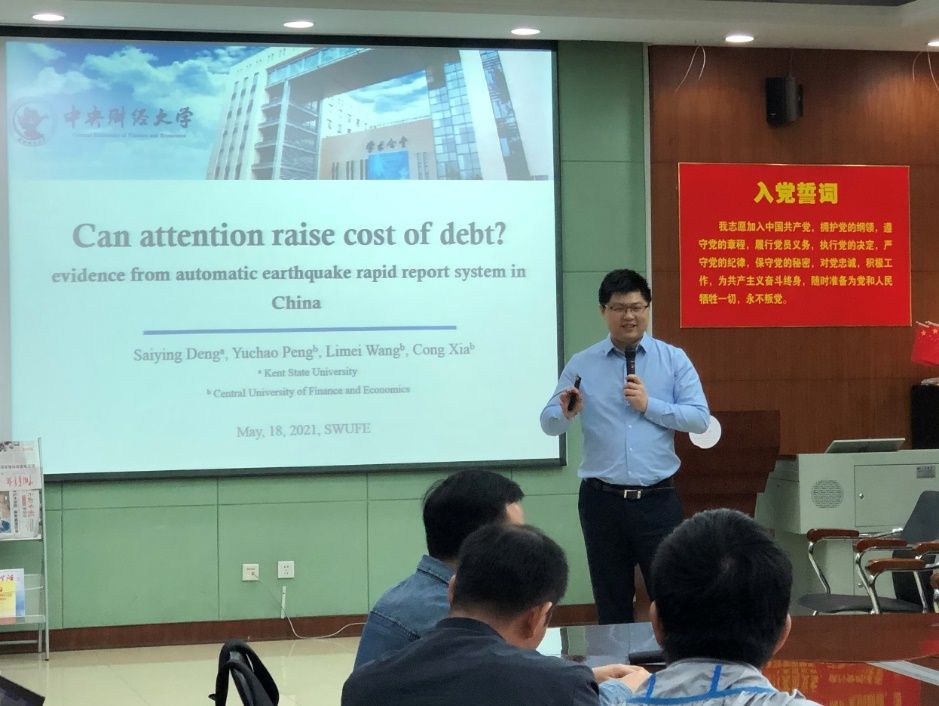 2021年5月20日,“中南·会计Seminar”第97期在文泉楼南401成功举行。中央财经大学彭俞超副教授应邀为我院师生作了题为《Can Attention Raise Cost of Debt? Evidence from Automatic Earthquake Rapid Report System in China》的学术报告。