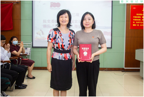 副院长王昌锐为学院“抗击新冠肺炎疫情先进个人”获奖对象颁发证书。