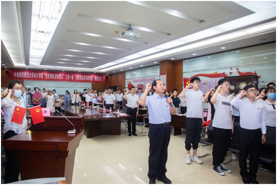 大会在全体与会人员雄壮的国歌声中开始。随后举行了新党员代表、毕业生党员代表宣誓仪式,与会全体党员面向党旗,在院党委书记殷修林的带领下重温入党誓词、集体庄严承诺、同过政治生日,重忆入党初心。