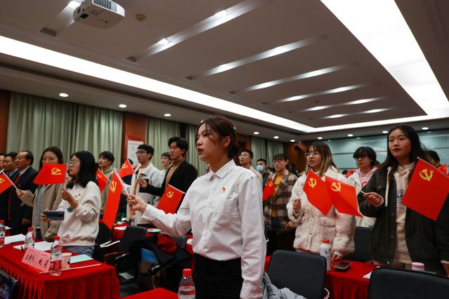 授课开始前,首批湖北省高校优秀“双带头人”教师党支部书记、会计学院汤湘希教授带领在场师生党员重温入党誓词。