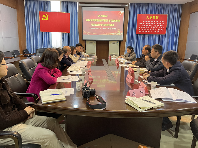 (通讯员 廖莎)2021年12月1日下午,校长助理、国际交流部部长、港澳台办公室主任(兼)徐涤宇教授带队来学院调研,国际教育学院院长郑影、副院长汪正君,国际交流部副部长李奕、办公室主任杨曼、项目与交流科科长张俊、专家科干部徐汇飞等参加调研。学院领导殷修林、徐会超、冉明东、李四海、胡桂锬及国际会计教育中心主任杨帆等参加了座谈。会议由学院党委书记殷修林教授主持。