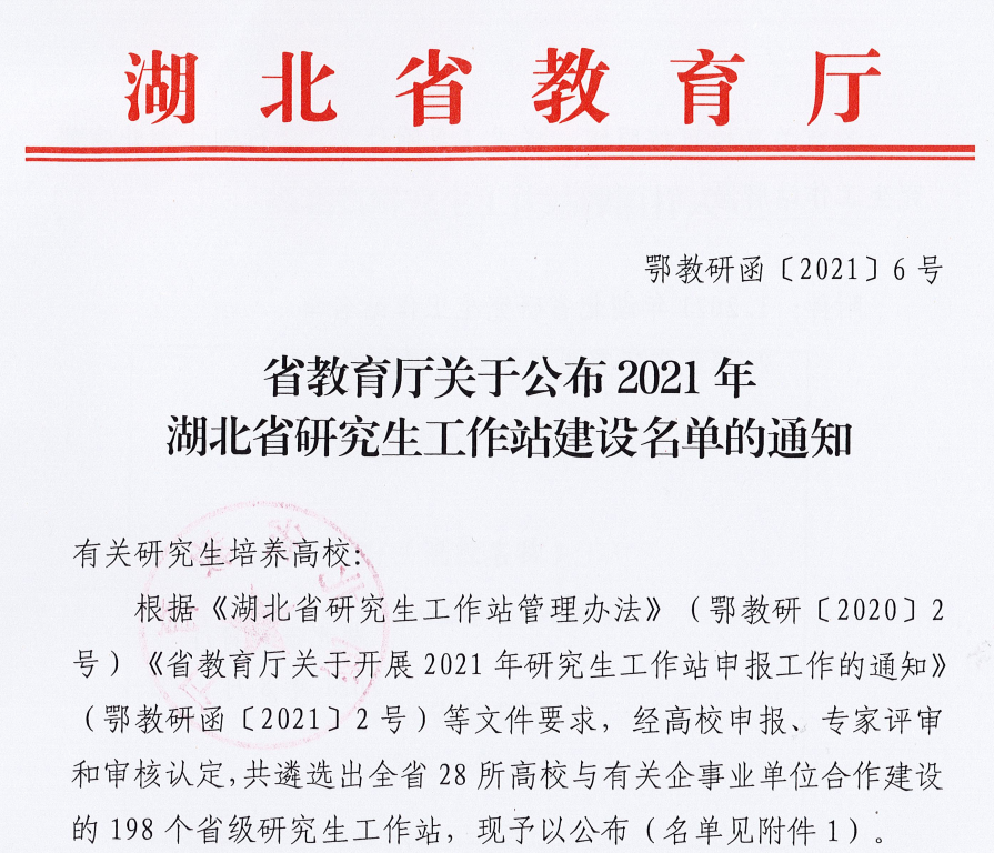 与中铁大桥局集团有限公司合作建设的“校企协同创新中铁大桥局研究生工作站”获批湖北省研究生工作站。