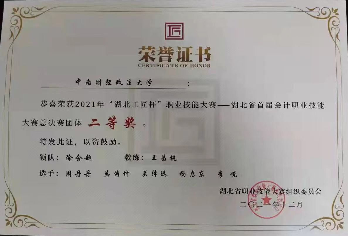 在由湖北省财政厅和湖北省人力资源和社会保障厅共同举办的首届“湖北工匠杯”会计职业技能大赛中,获团体二等奖、“最佳组织奖”,三名参赛选手中两人获个人一等奖、一人获个人二等奖;在华为财经精英挑战赛中,获华中赛区第一名(全球十强)、“最佳组织奖”;在“福思特杯”全国大学生审计精英挑战赛中,研究生获研究生组二等奖,本科生获本科生组一等奖。