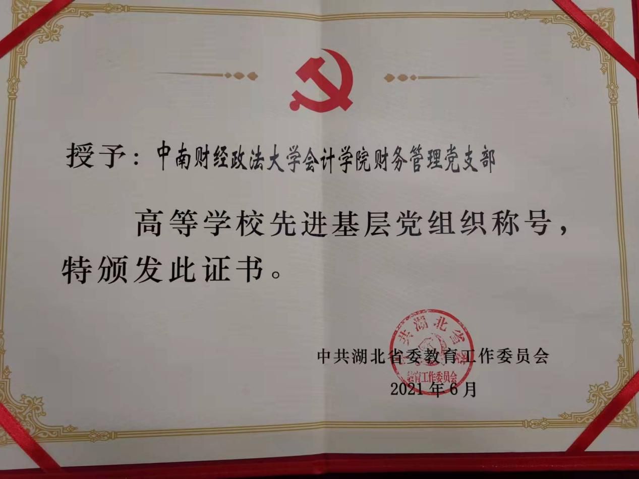 财务管理党支部获评湖北省“高等学校先进基层党组织”称号。院党委获学校“先进基层党组织”称号。