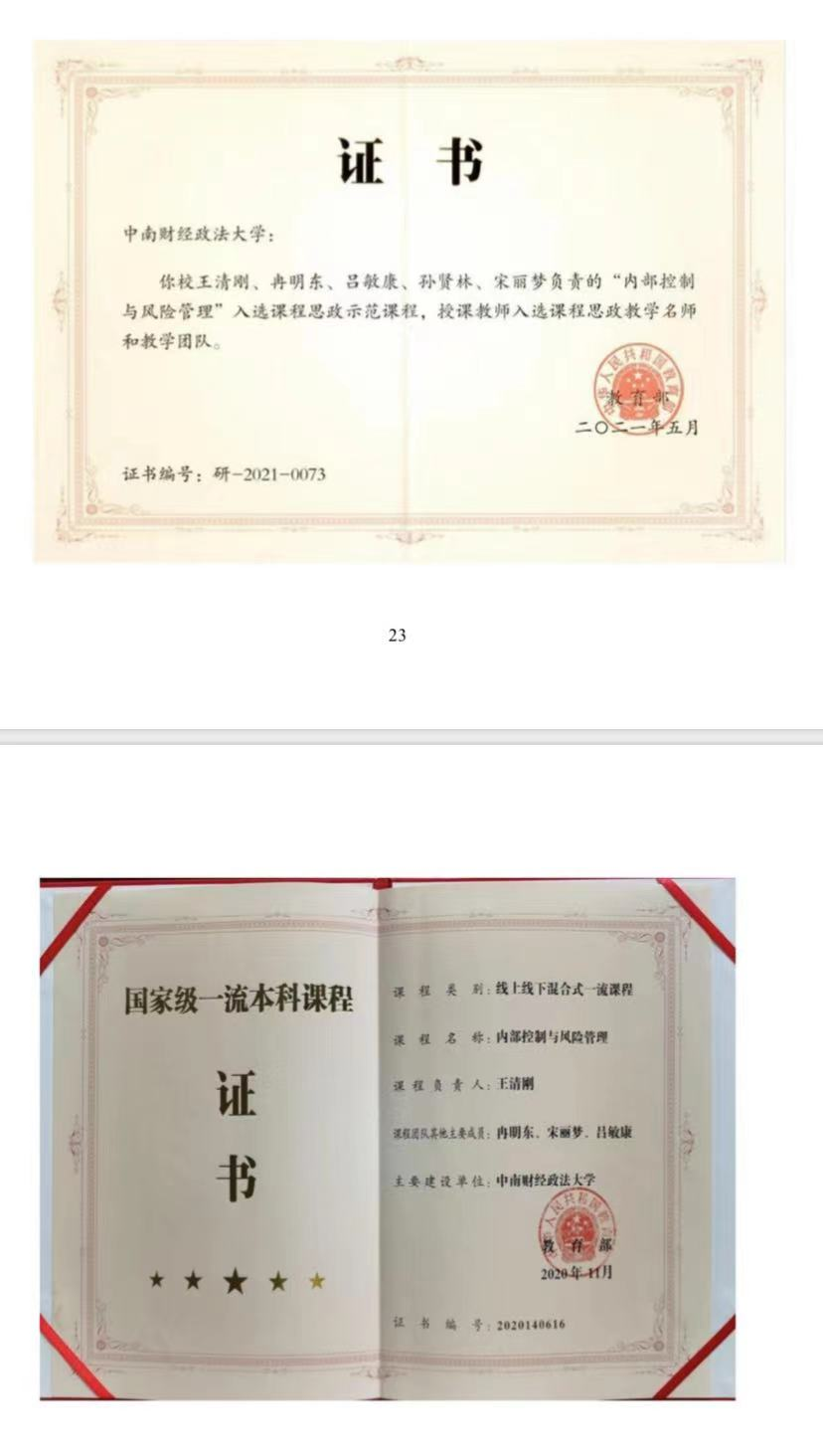 王清刚教授负责的《内部控制与风险管理》课程入选教育部课程思政示范课程,该课程教师入选课程思政教学名师和教学团队。