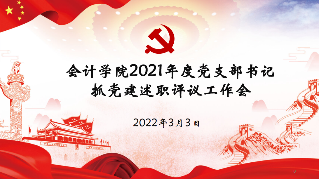 全体教职工党支部、本科 2020级学生党支部、学硕 2019级财管审计研究生党支部、学硕 2019级会计学研究生党支部、学硕 2021级财管审计研究生党支部、学硕 2021级会计学研究生党支部、2021级会硕第一党支部、2021级会硕第二党支部、2021级会硕第三党支部、博士 2019级党支部、博士2021级党支部等16位党支部书记结合PPT图文展示,依次作现场述职,其余9位党支部书记进行了书面述职。