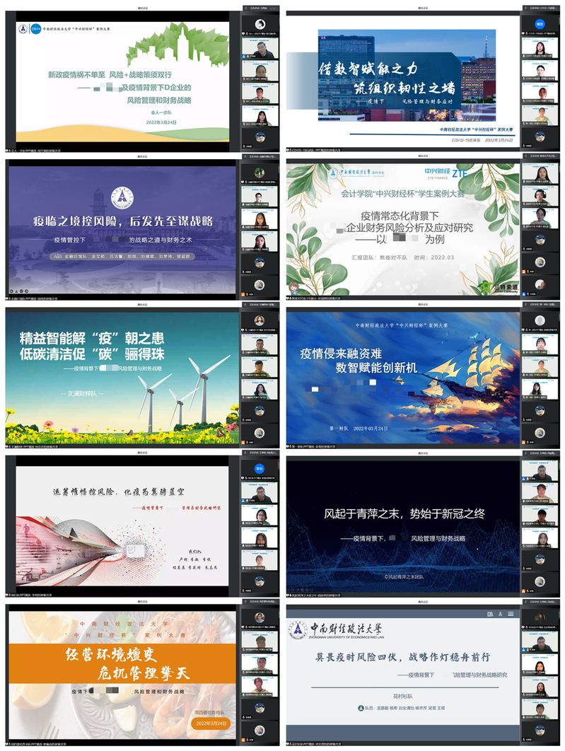 “疫情对公司的影响路径可以从业务、供应链、财务三个方面来看”“从图表中可以看到,该公司可转换公司债券融资待充分利用”……3月24日下午,由中南财经政法大学会计学院(会硕中心)和中兴通讯股份有限公司联合开展的“中兴财经杯”学生案例大赛在线上火热开展,围绕“疫情背景下企业风险管理与财务战略”这一主题,十支队伍同台模拟管理决策,比拼解决方案。