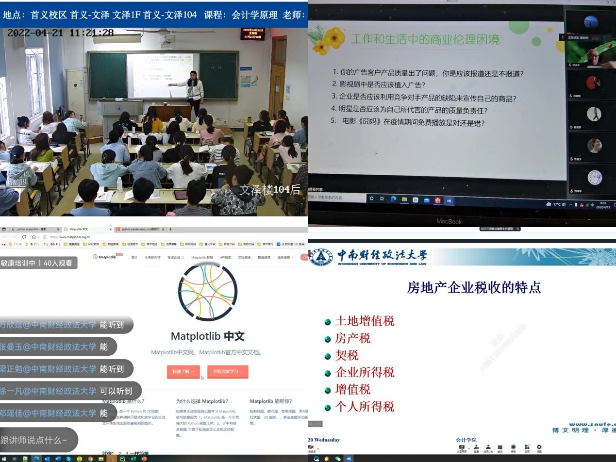 本次期中教学检查共计检查全院开课的111个本科课堂和44个研究生课堂,做到了检查全覆盖。在检查中,无论线上线下,所有课堂授课教师均能提前到岗,准备充足,按时上课。授课过程中严守政治纪律,遵守教学工作规范,授课认真,课堂秩序良好。学生听讲认真,能主动和老师互动,及时做笔记。课堂到课率到90%,未到学生皆因疫情隔离原因,对于这部分学生学院也都及时做好线下教学、线上同步授课,并安排任课教师开展线上辅导、答疑。因疫情原因,部分研究生课堂无法线下授课,也通过腾讯会议、企业微信等智慧教学工具转为线上授课教师教学态度良好,学生学习态度端正,各项教学活动有条不紊进行。
