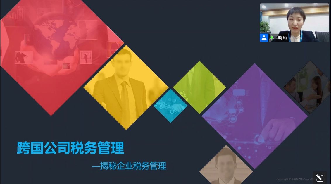 2022年4月23日,中兴通讯集团海外税务管理总监张晓颖女士通过“腾讯会议”平台,为我院会计专硕研究生讲授《跨国公司税务管理》,该课程由专硕导师组组长季华副教授主持。