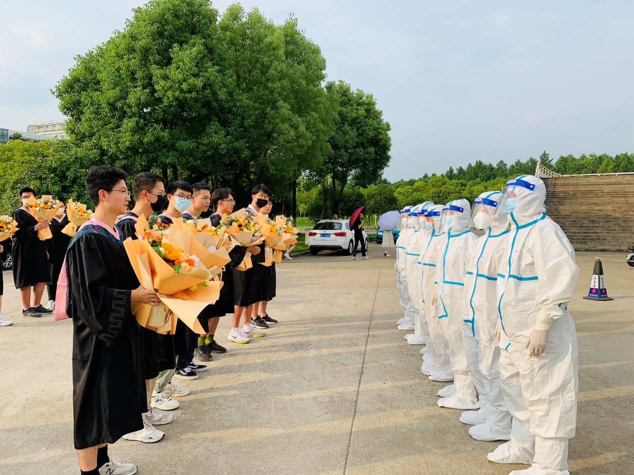 大学四年,疫情占三年,会计学院的460余名本科毕业生们感恩母校的培养,也感谢三年来守护他们健康的“大白”们。他们即将离开校园,希望通过献花的方式,对默默付出白衣天使们表达感激之情。在核酸检测现场,毕业生们虽然看不清楚全副武装的“大白”们的面容,但在心中“大白”们就是守护他们健康的最美的天使。