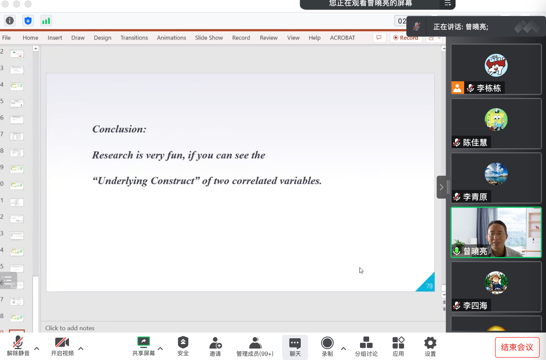 在交流提问环节,曾教授与吕敏康副教授以及同学们就文献梳理、数据库构建等问题作了深入的交流与探讨。最后,李栋栋博士对本次报告做了总结。至此,“中南·会计Seminar”第121期圆满落幕。(通讯员:李栋栋)
