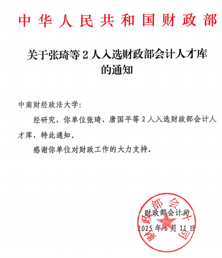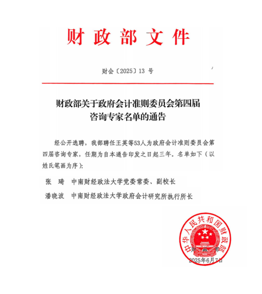学院坚持立足中国实际,深耕会计领域理论研究与实践探索,为国家经济建设和社会发展提供坚实的理论支撑与高效的智力支持。今年6月,张琦教授、唐国平教授入选财政部会计人才库,张琦教授、潘晓波教授入选财政部政府会计准则委员会第四届咨询专家。师资队伍中,多名教师担任各级政府、企事业单位、相关行业学会的咨询专家、委员等。同时,成功获批财政部委托的自然资源会计核算相关问题研究、行政事业单位收入确认相关问题研究等课题。这些成果不仅彰显了学院的学科实力与专业影响力,更将持续为国家财经领域发展注入强劲动能。![]()