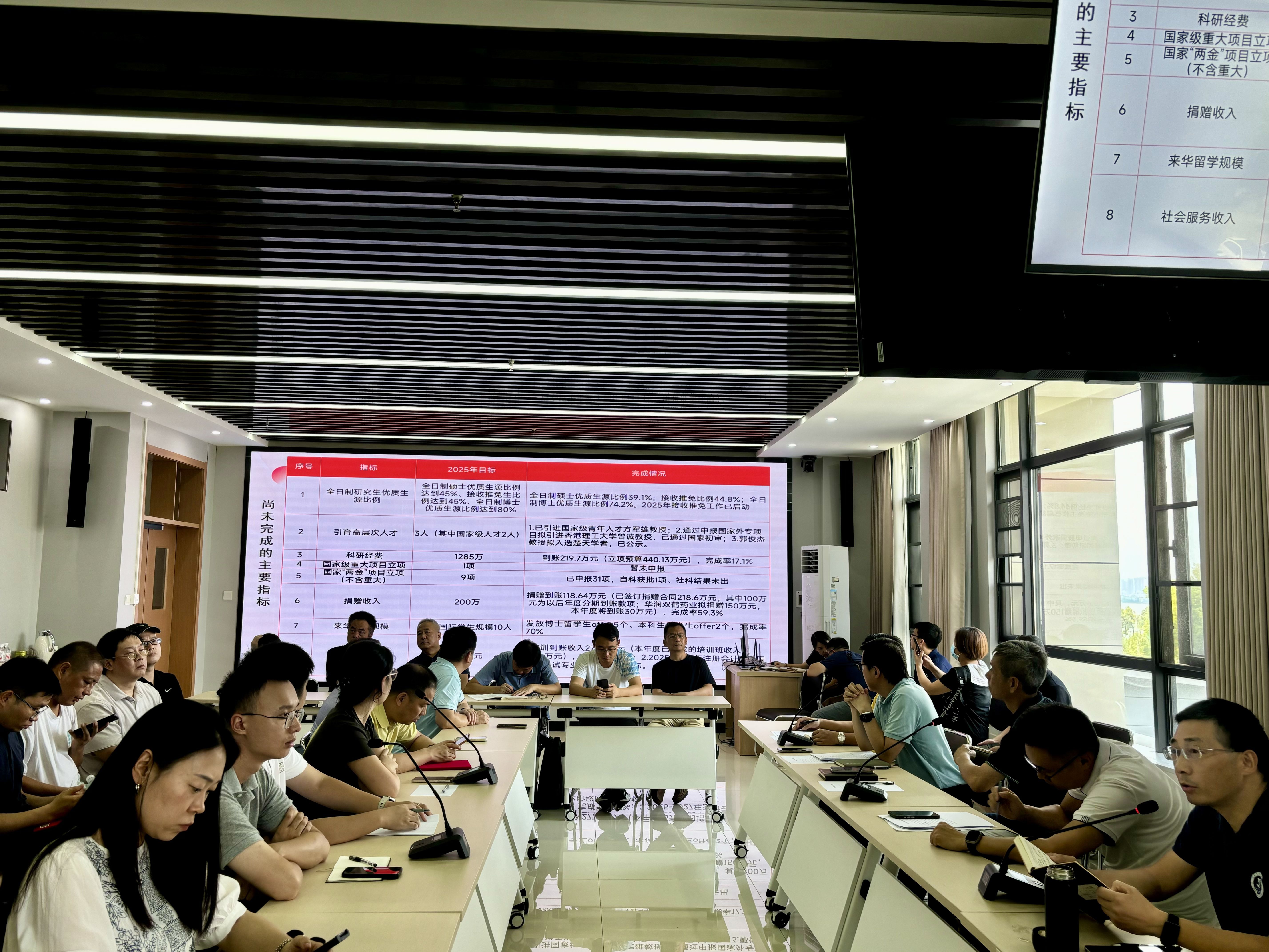 此后,周勇书记着重传达了8月28日校长、校党委副书记、联系校领导朱方伟对于学院统一思想、凝聚共识,以“自下而上主动作为”昂扬姿态推动改革创新的关心指示:学院要下大力气解决班子担当作为不足、上热中温下凉、有组织的科研不力、课堂教学投入不够、人才培养质量和激励约束有待优化等重点问题,在厘清思路上做出“大调整”,在较真碰硬上做出“大动作”,在落地见效上产出“大成果”,紧抓转型契机,补足短板弱项,共促长效发展。紧接着,学院党政副职依次汇报了2025年主要发展指标已完成情况、存在问题及整改方向和下半年重点工作计划。同时,学院党委、纪委还专门就廉洁自律、科研经费使用管理自查自纠工作做出再警示和再强调。