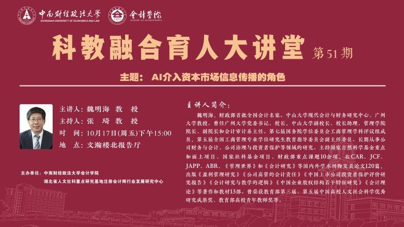 学术讲座 | 科教融合育人大讲堂第51期