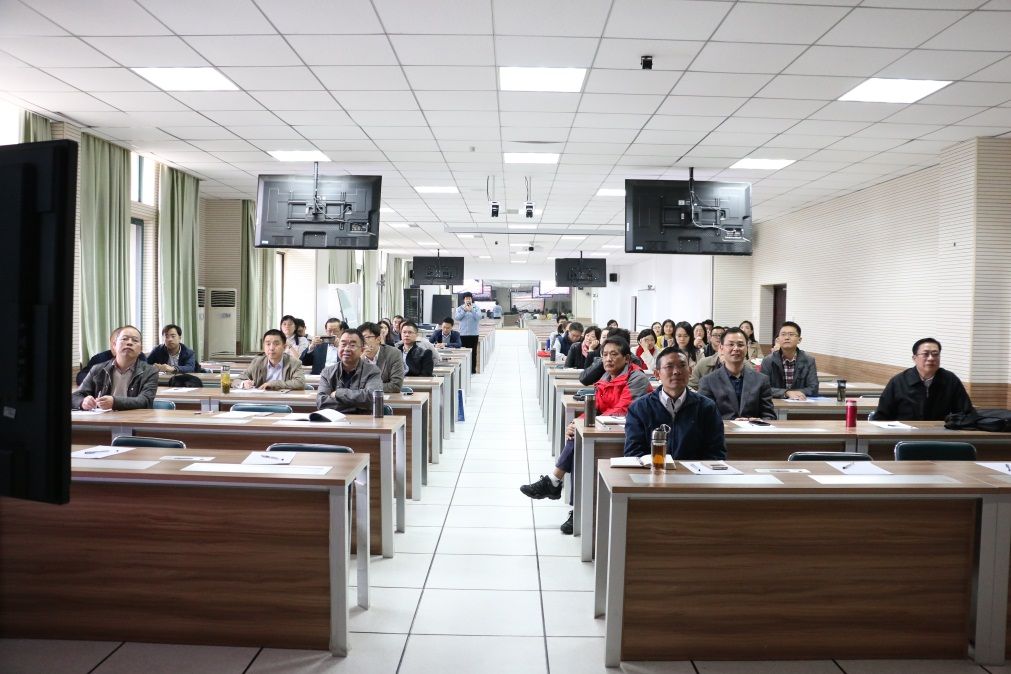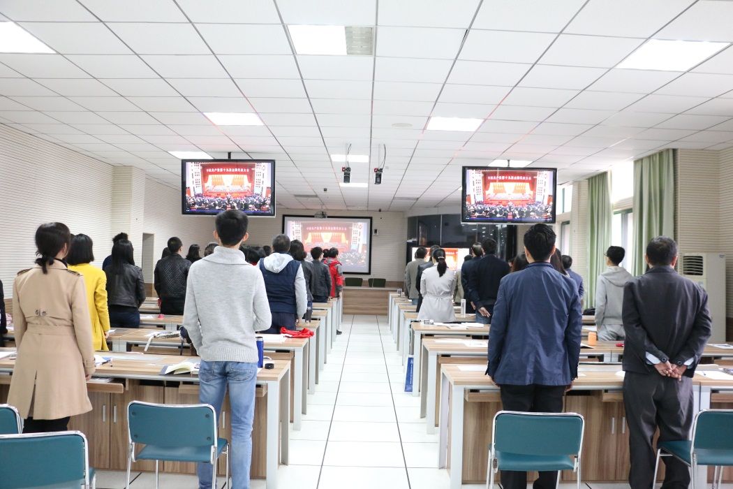 2017年10月18日9:00,会计学院班子成员和全体教职工党员在文泉南601实验室集体观看中国共产党第十九次全国代表大会开幕式。