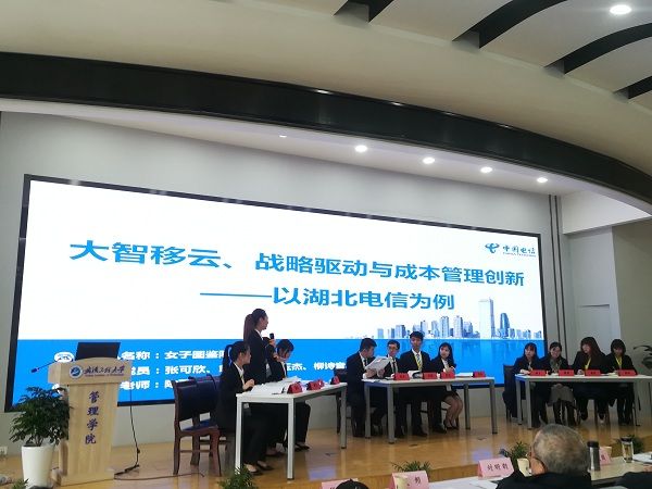 湖北省MPAcc学生案例大赛本着“平等合作、互利互惠、公平公开”的原则,由湖北省会计硕士专业学位联盟发起,湖北省17个MPAcc培养单位共同发起并参与的学生赛事。本次大赛的主题是“‘大智移云’背景下企业成本管理创新”,各参赛队前期赴案例企业实地调研,撰写案例分析报告,在复赛和决赛中分别展示其调研案例公司大智移云背景下的成本管理创新及其存在问题,并针对问题提出解决方案和现实意义,同时接受对手提问并进行自由辩论。