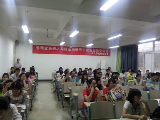 | 为促使我院研究生在校期间更好地规划学习和生活,努力培养自身的核心竞争力,从而在未来的竞争激烈的就业中脱颖而出,会计学院研究生会于5月21日6点30分在文添105成功举办了“研究生就业经验交流会”,取得了良好的反响和评价。 交流会在热烈的掌声中拉开了序幕。与会的六位嘉宾分别从自身的经历和签约单位的特点,为在场的师弟师妹们详细地讲述了他们的求职心得。 现任信托经理的王灵宁同学,以“幸福在哪里呀?幸福在哪里?”这样幽默风趣的开场道出了我们交流会的灵魂所在。找工作也是找幸福的一个过程,在找工作的时候也要考虑家庭的因素,包括父母的意见、女朋友的想法等。另外,他认为,就业方向可从三个方面考虑:城市、行业、工作环境。从城市来说,他选择了一个他呆了七年并爱上的城市,也选择了离家近、方便照顾父母的城市——武汉。从行业来说,他认为医疗、养老、高科技、网络等行业非常有前景。从工作环境来说,他认为符合自己性格的工作环境很重要,也是以后工作的幸福所在。 签约海通证券的尹经纬同学,则分别从软件和硬件两方面进行了介绍。首先,硬件方面有学历、证书、实习和学生工作,软件则包括专业技能、思维方式和为人处世能力。他指出,同学们要锻炼出自己的一套思维方式,包括发现问题、分析问题、解决问题的能力。 签约银行的张蝶同学则从网申、笔试、面试三个阶段详细地介绍了银行求职过程中需要注意的地方。签约烟草公司的金娟娟同学,娓娓道来她求职过程中发生的各种有趣的事,以及求职过程的辛酸史。 在互动环节中,现场观众就自己的疑惑向嘉宾们提问,嘉宾耐心、详细为他们一一解答。此次交流会让“身在此山中”的研究生同学们在领略精英风采的同时,增强了对职业规划、实习、面试的理解和认识,意识到“要想工作找的好,职业规划要趁早”,提高了同学们对求职就业的积极性和重视程度,为今后的求职打下了坚实的思想基础。