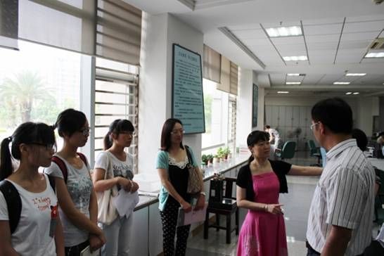 6月24日上午8:00,会计学院2010级第一批财务部实习生在财务部邓迪贤副部长与办公室邓雪梅主任带领下,参观了财务部会计报账一科、收费管理科、结算中心、计划管理科和核算管理科等部门,并由各个部门的科长向学生们介绍并演示了每个岗位的工作流程。