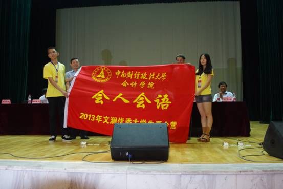 仪式上,吴汉东分别为“中南经英”、“财政学”、“融汇中南”、“会人会语”四个分营授旗。
