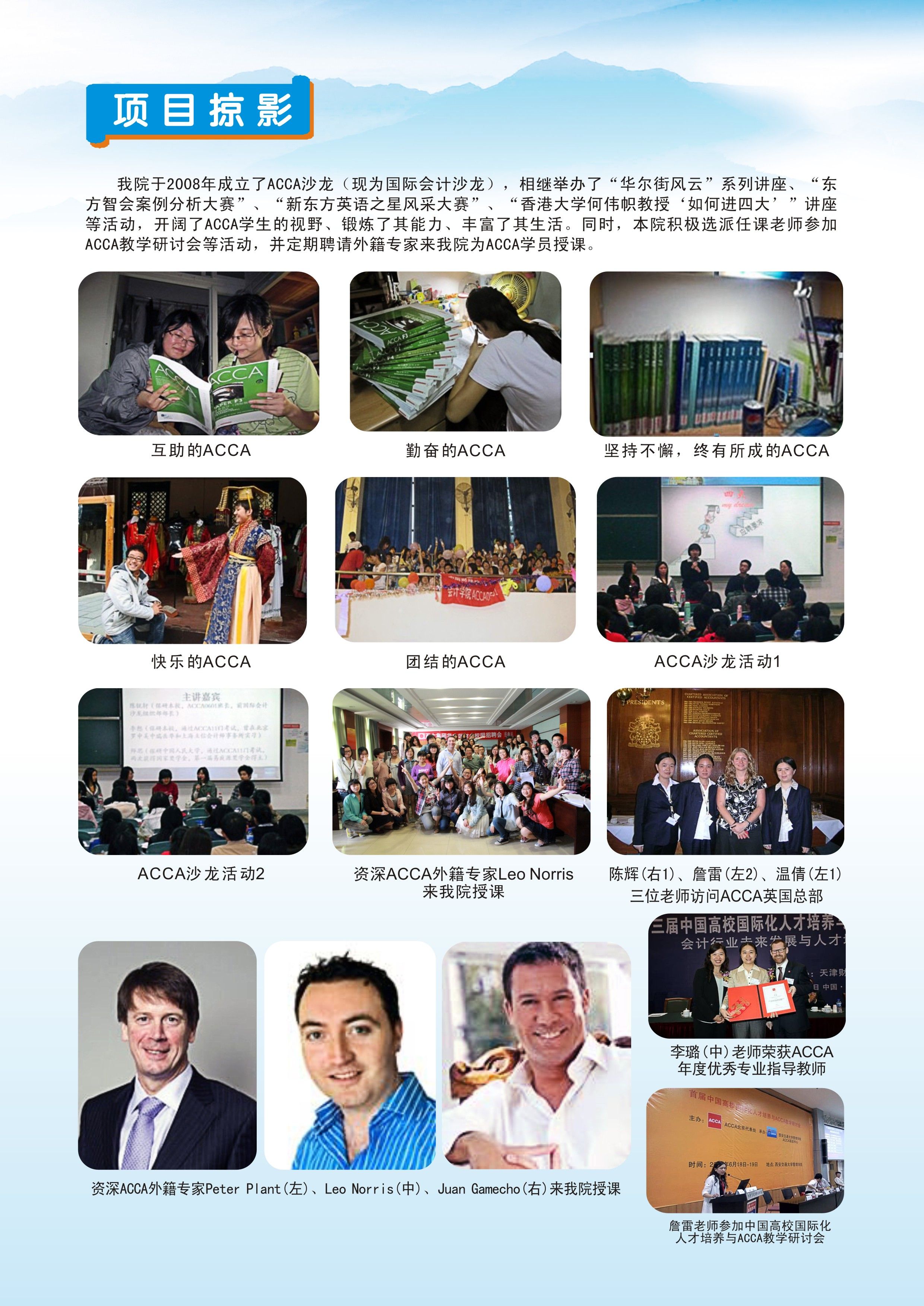 假期时间,国际会计教育中心系统全面地梳理国际合作办学项目,按照不同的国际项目,分别编制ACCA、中澳班、CGA项目的宣传画册,详细介绍了学院国际项目每年高达30万的奖学金政策,突出了ACCA项目的高通过率以及获得全球考第一的标杆数量;中澳班项目的高海外名校读研率;CGA项目的学生素质教育的显著性。