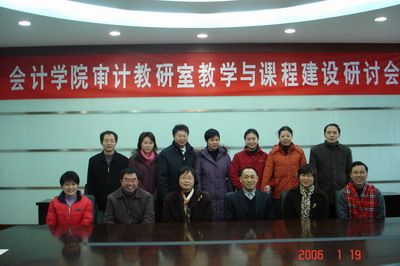 为了更好地迎接本科教学评估,进一步推进我校审计学科建设,会计学院审计教研室经过精心筹备,于2006年1月19日在文泉楼成功召开教学与课程建设研讨会。研讨会得到了院领导和院党政办公室的大力支持,会计系两位主任、院教学秘书和审计教研室全体老师参加了会议。
