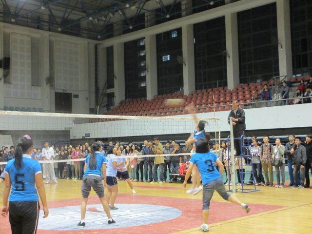 | 2012年10月22日晚六点,在2012-2013校排球联赛的决赛赛场,我院女排的姑娘们披荆斩棘,再创佳绩,以3:0的绝对优势击败工程学院勇夺桂冠,蝉联了本项比赛的冠军。会计学院党委副书记张学平老师、分团委书记徐会超老师及副书记张昭妍老师莅临现场观看了本次比赛。 随着第一场比赛哨声吹响,会计学院队员便凭发球轻松拿下第一分,迎来开门红。经过十几分钟的比赛,会计学院将比分优势扩大至13:8,并将5分的差距保留至第一局结束。第一局,我院女排以25:19轻松获胜。 在第一局休息之时,会计学院党委副书记张学平老师也亲自走入女排姑娘们中间和教练一起为大家精心部署下一局的战术,并为大家加油鼓劲。经过第一场比赛的热身,女排姑娘们的表现都渐入佳境。会院女排延续第一场的气势一开场便连得三球,而后一度将比分拉至8:2。工程学院女排们也没有气馁,步步紧逼,使比赛的气氛逐渐高涨。两边看台上观众的呐喊声此起彼伏,还有几名热情的留学生为会计学院女排们助威加油。第二局,我院以25:17获胜。 第三局开场后工程学院改变战术转守为攻,凭借主攻连得四分,局势对我院非常不利。关键时刻,我院女排不急不躁,迅速调整战术,冷静发挥,加强配合,与对方开始了拉锯战,比赛呈白热化状态,比分交替上升。在最后的关键时刻,会院的姑娘们克服体能的下降,咬紧牙关,用漂亮的二传和快、狠、准的快攻将工程学院彻底击垮。虽然我们的主力6号队员在最后几分时意外受伤,但会院女排以其稳定的发挥和精湛的球技最终赢得了比赛,卫冕成功。 据悉,此次比赛从小组赛至决赛阶段共经历两周时间,而会计学院女排也是继去年比赛脱颖而出后再次获得冠军。从学院小组赛中每场必胜的傲人成绩到今日冠军角逐的成功卫冕,会院女排荣誉的背后也有着许多不为人知的艰辛和汗水,不断付出的努力将使她们在以后的比赛中越走越远,越走越宽。