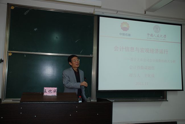 2013年11月29日下午3点半,“會萃堂”系列活动之名家讲坛在文添308教室成功举行。本次讲座的嘉宾是中国人民大学商学院王化成教授,其讲座主题是“会计信息与宏观经济运行”。 王化成,中国人民大学商学院教授、学科责任教授,博士生导师,博士后联系人。全国会计专业硕士学位教育指导委员会秘书长,国家社科基金评委,中国会计学会理事兼副秘书长,中国会计学会财务成本分会副会长,中国总会计师协会常务理事。我国多所知名大学兼职教授、英国卡迪夫大学中国会计、财务与管理研究中心客座研究员。多家公司独立董事,主持多项国家自科、社科课题,发表论文100余篇,出版专著教材20余部。多次获国家级、省部级优秀科研成果一等奖、二等奖,《会计研究》等杂志特邀编审。莅临本次讲座的嘉宾还有会计学院副院长兼会硕中心主任张敦力教授。
