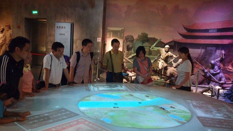 第五展厅“辛亥百年”,百年辛亥,百年峥嵘,百年沧桑,百年巨变!展厅中间最为特别的是有一个大圆台,盘面上是展示长江把武汉分成三镇的近代工业的地图和面貌,手一触摸,地图、图片、文字介绍就显现在眼前,如汉阳铁厂、武昌造币局等,非常直观便利。