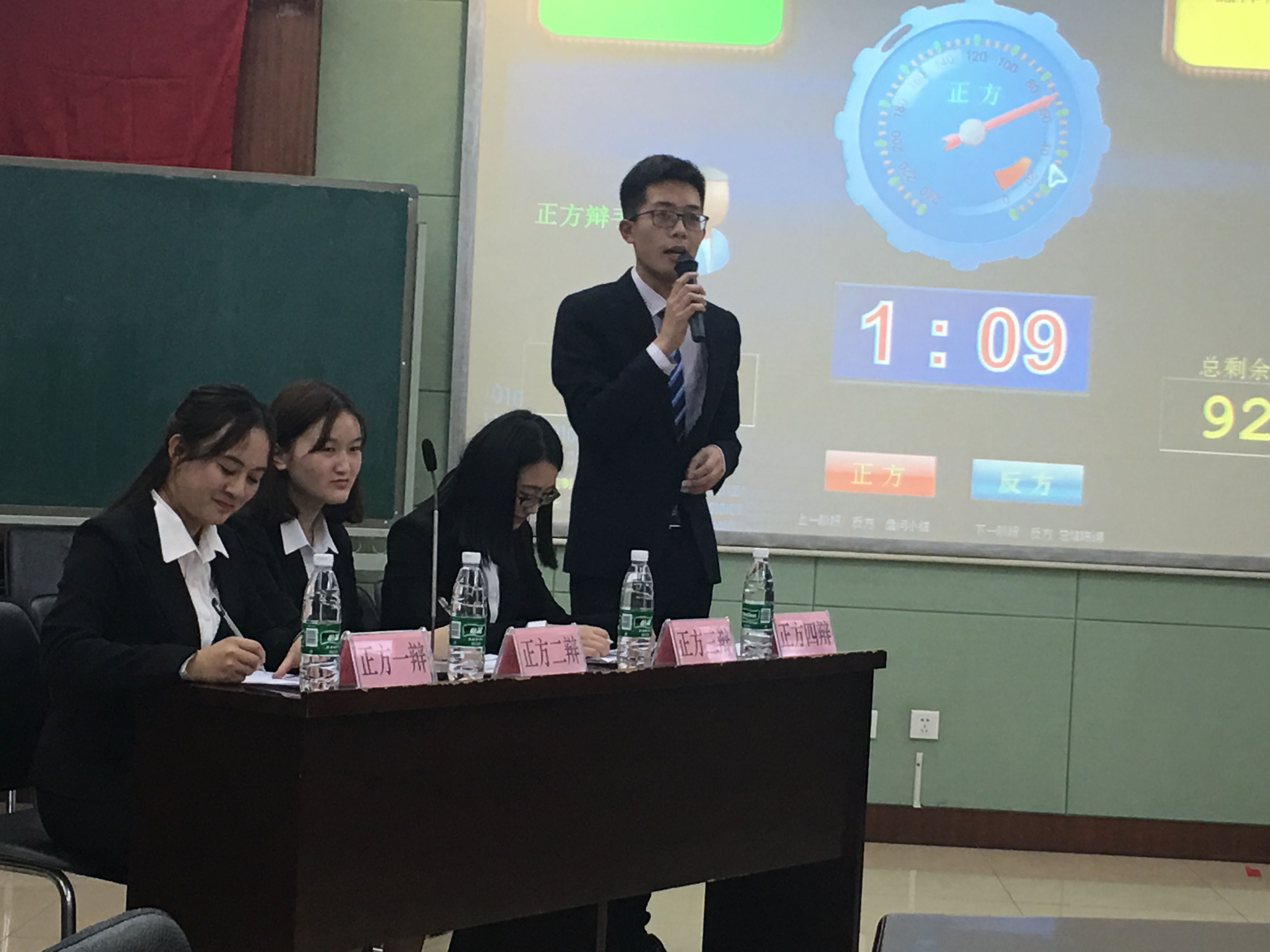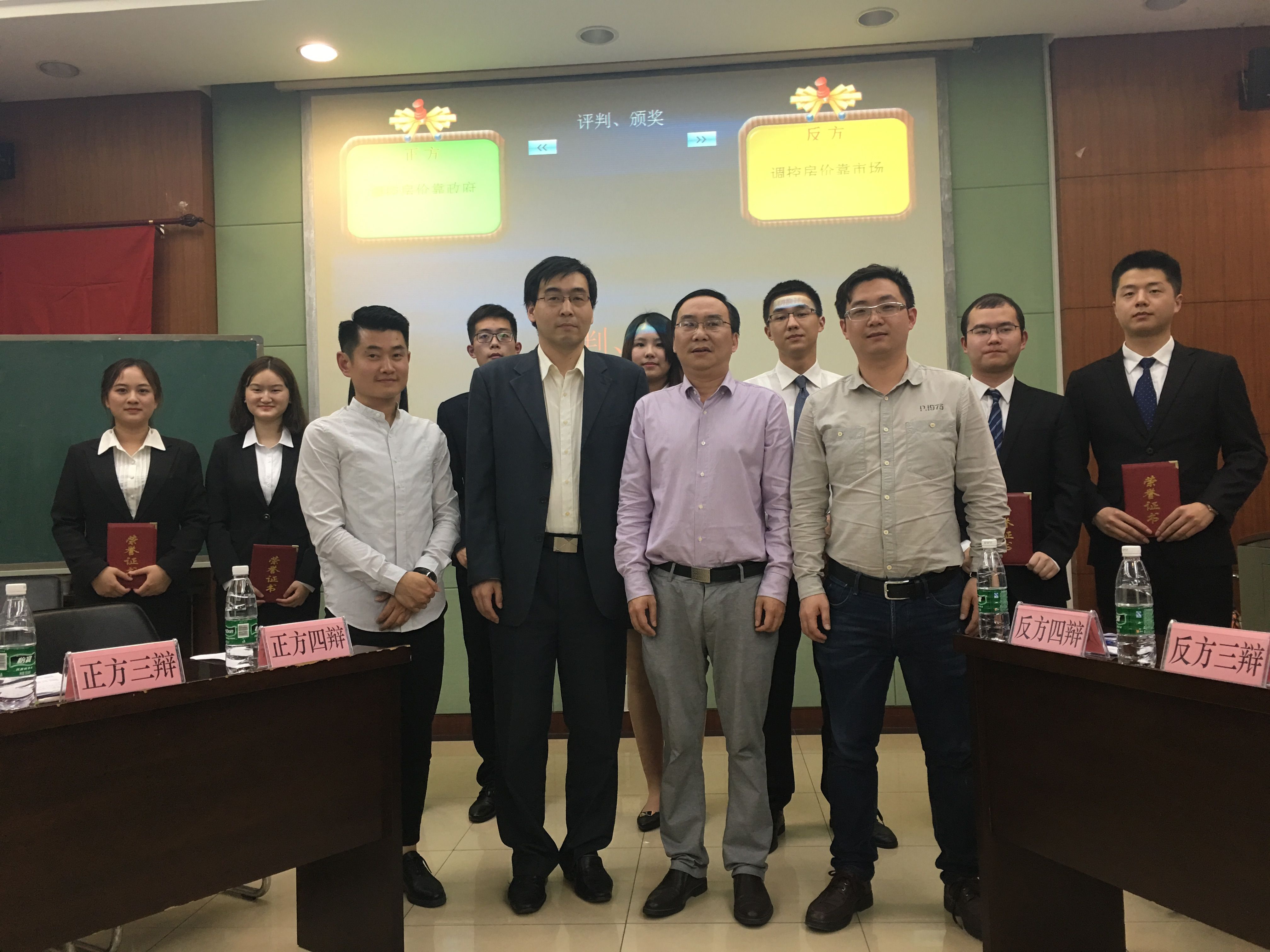 随后,全体参会人员起立合唱《国际歌》。曲毕,一场题为“调控房价需要靠政府还是靠市场”的辩论赛将活动推向高潮。本次辩论赛有幸邀请到了李纲老师,曾大庆老师和李四海老师担任评委。正方危梦婕、邓舒予、蒋洁、吴珣四位同志认为调控房价需要靠政府,反方牛晨耕、贾义博、汪瑞、孙昊帆则认为调控房价需要靠市场。双方辩友针尖麦芒,互不相让,在盘问环节,正方二辩邓舒予同志以“中国房价是丈母娘炒起来的”的妙语引起观众阵阵掌声,反方三辩汪瑞同志联系国家政策和专业知识给予巧妙的回击。在自由辩环节,正反双方你来我往,旁征博引,刀光剑影,把辩论赛推向了高潮。比赛结束后,评委李纲老师和李四海老师分别向正反双方辩手提出了针对性问题,曾大庆老师就选手的精彩表现提出了表扬,同时对各位选手提出了中肯的建议。最后正方队伍获得评委老师的一致肯定,摘得桂冠。