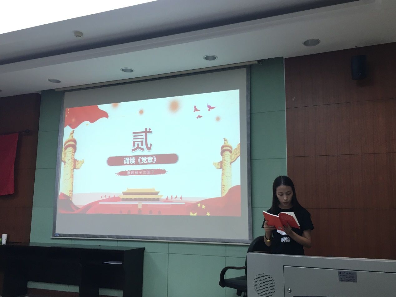 会议开始,全体人员重温入党誓词,不忘初心跟党走。之后,在戴维思同志的带领下,全体人员学习了《中国共产党章程》第一章,对入党条件和党员的权利和义务有了更深的了解,明确了作为一名党员,要正确行使权力,积极履行义务。通过学习,大家也深知作为一名预备党员,要发挥模范带头作用,继续向党组织靠拢,争取早日成为一名正式党员。