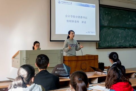 10月28日上午九点半,会计学院第十八届团学志成立大会暨干事培训大会在首义校区文泽楼303隆重举办。出席此次大会的有会计学院团委书记张昭妍老师、团委副书记杨少同老师以及团学志全体同学。