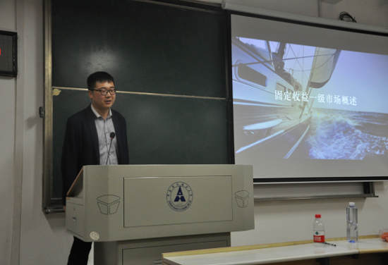 孙杰2016年于我校毕业,取得刑法学硕士学位,目前就职于湖北省联合发展投资集团有限公司。他分享了实际工作中企业债券、公司债券、一级市场债券的发行及资产证券化相关内容,接着讲述了一级市场主要参与者如评级机构、担保人、评估机构等,并与大家分享了目前融租赁行业的发展情况。