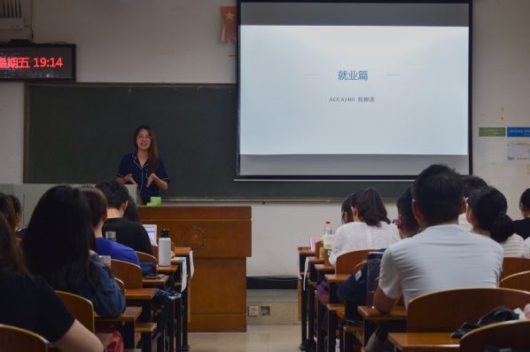 5月4日晚七点,由会计学院团委主办、会计学院学生会权益部承办的出国就业保研考研讲座在南湖校区文澜楼108教室举行。杨柳茜、吴子捷、彭吉喆、王莹四位会院优秀学子与在场同学分享了他们的学习经验和职场经历。